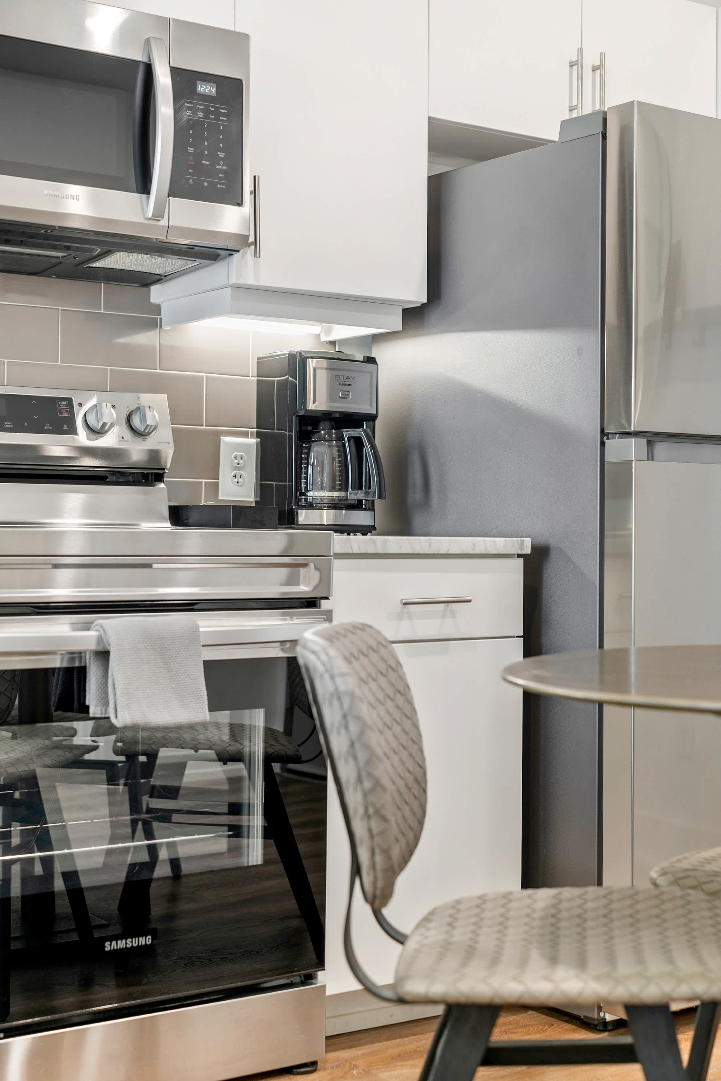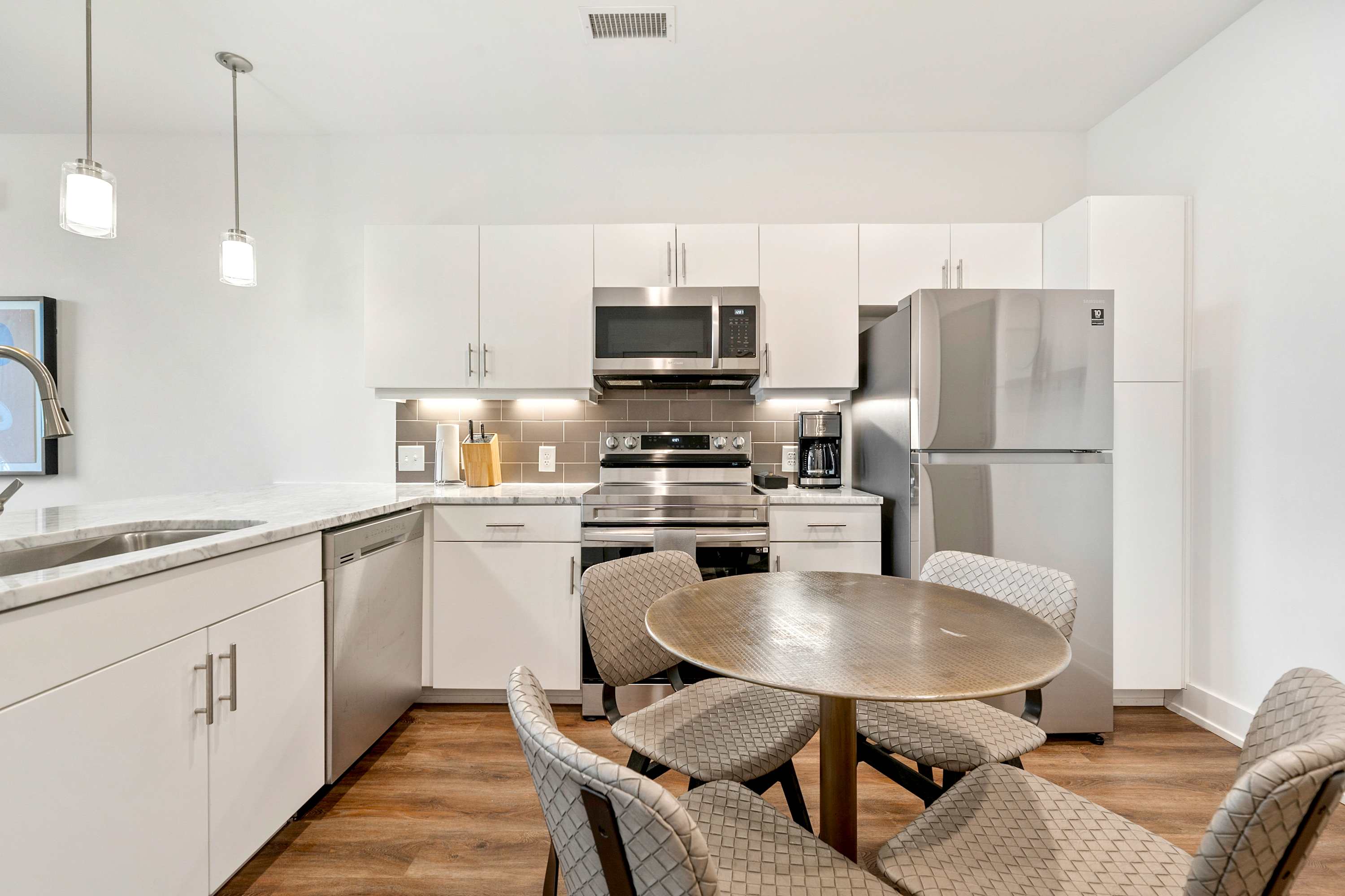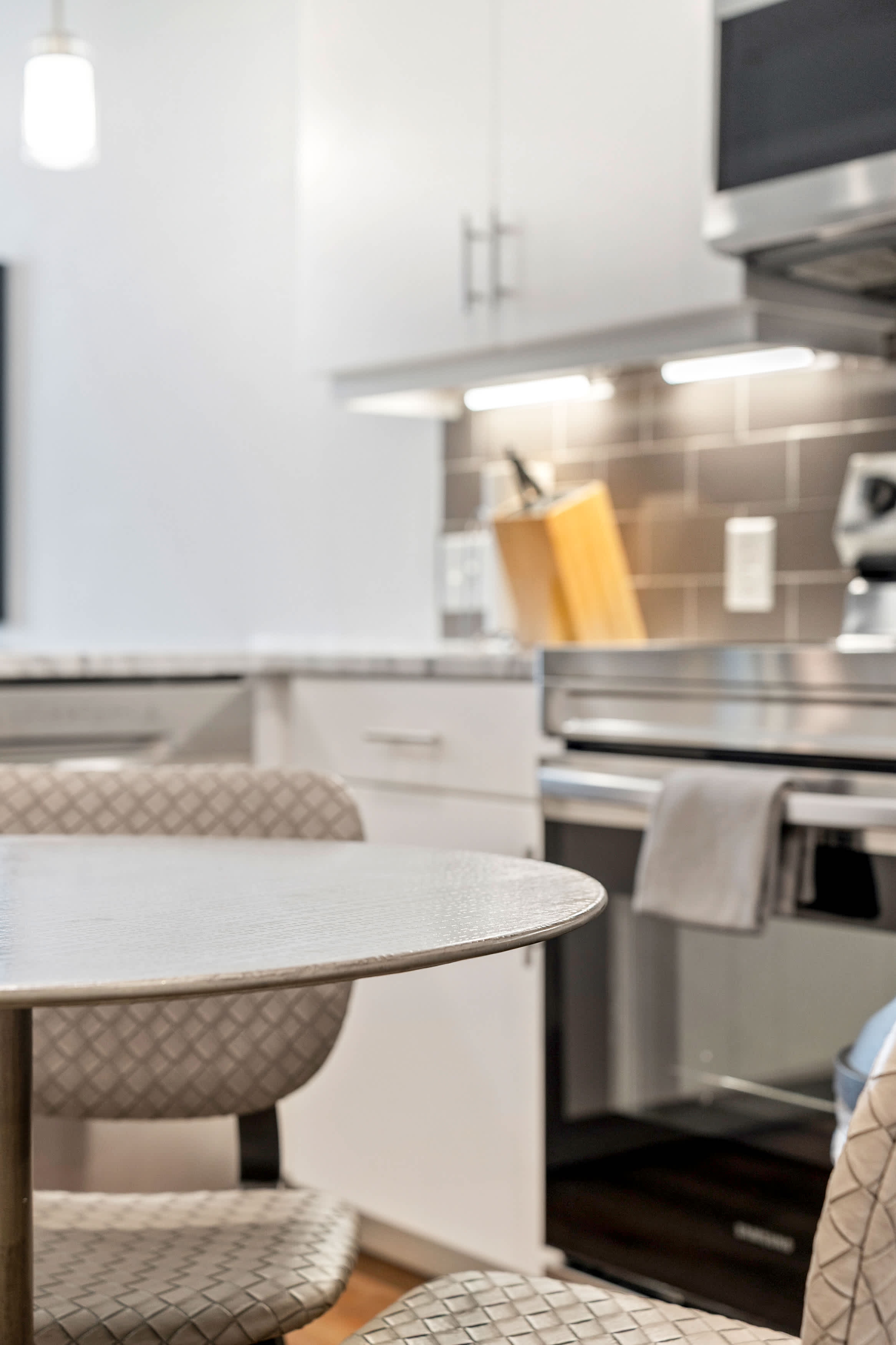 Begin your day on the right foot by enjoying a delicious breakfast and a cup of coffee at the kitchen bar. And when it's time for lunch or dinner, the dining table provides the perfect setting to gather and savor a family meal.