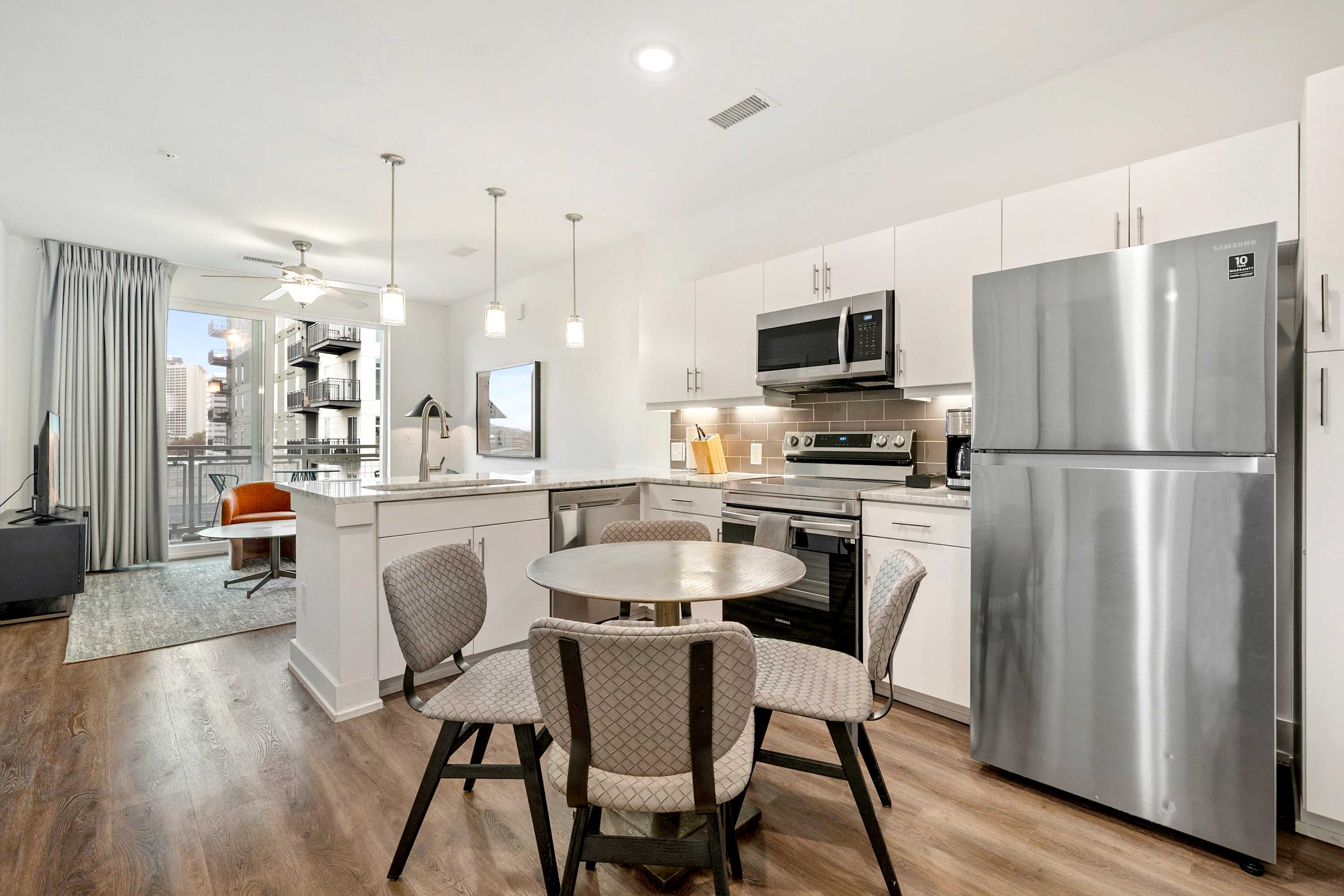 If you want to marvel at the city's views and the majestic Bank of America Plaza but don't want to leave the comforts of home, come to the private balcony and take in the breathtaking ambiance that will make you want to extend your stay.
