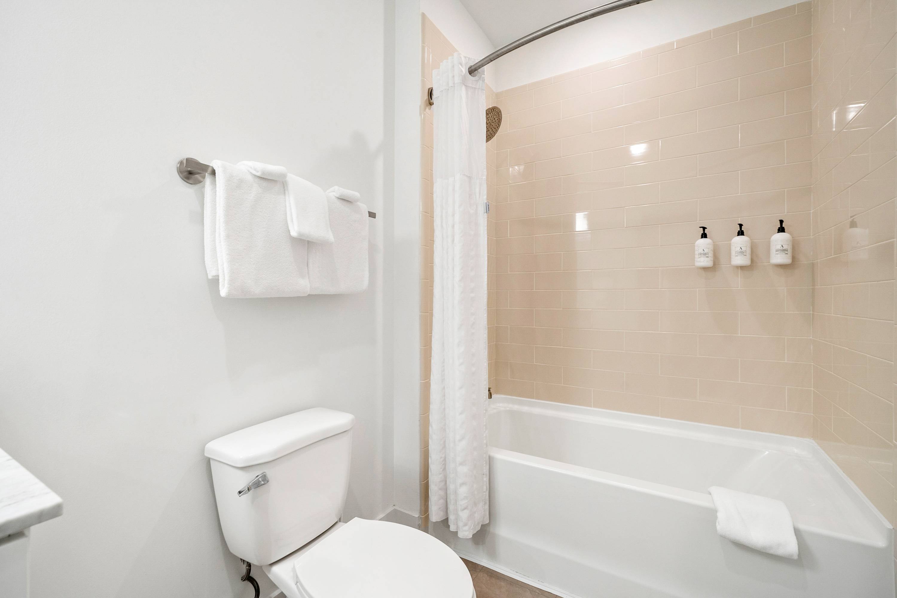 The home features a full bathroom that will keep you fresh and rejuvenated. To ensure you have a comfortable, carefree stay, we have provided essential toiletries and towels in each bathroom.