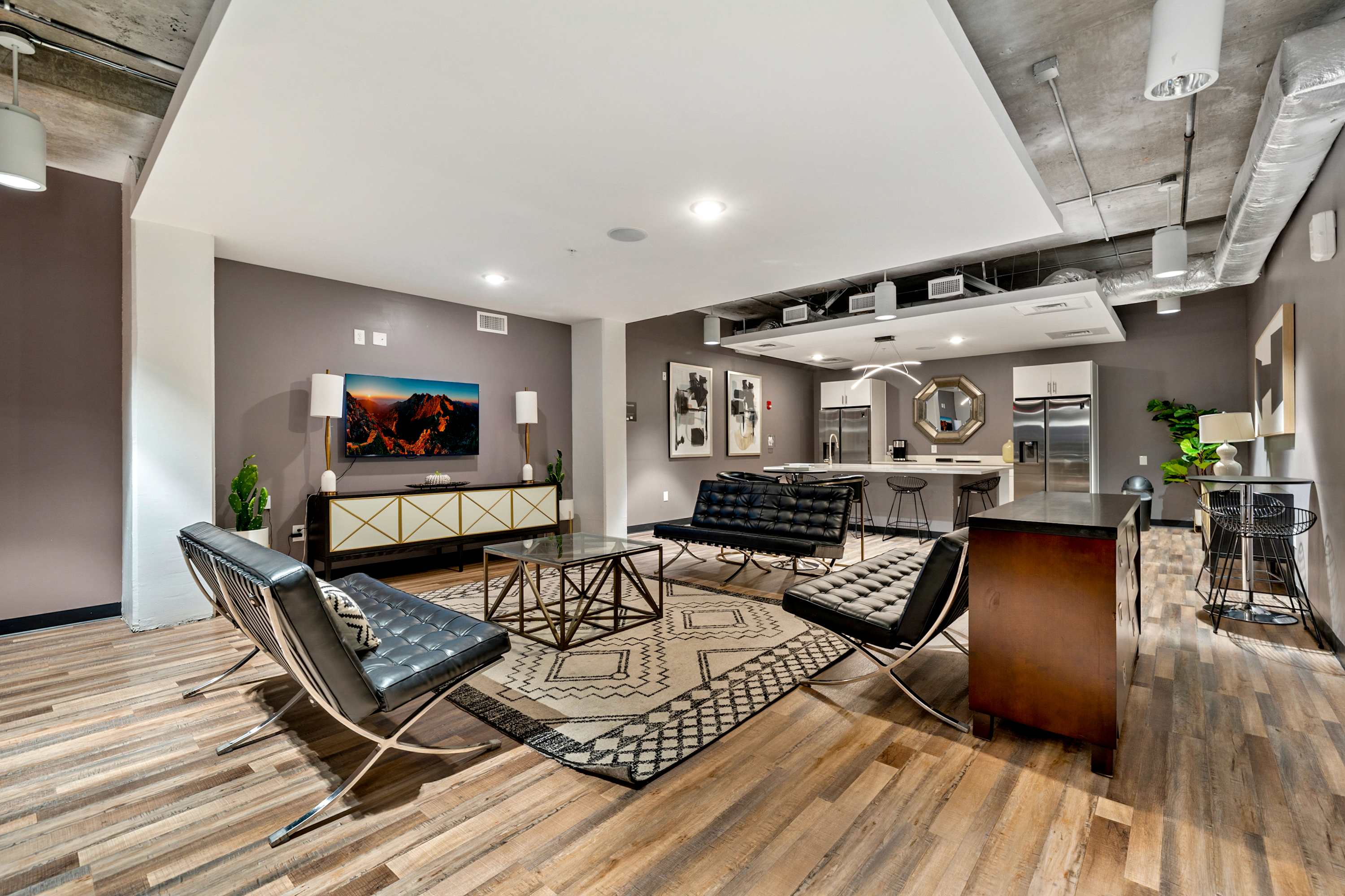 Immerse yourself in the chic style and comfort of the living room, where you can watch the latest episode of your favorite TV show, take a break from thrilling attractions, and more, all while enjoying the modern open-plan living area.